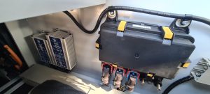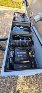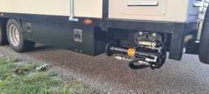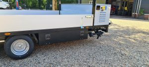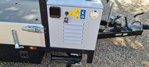 Deze aanhangwagen is voorzien van een Vanguard 23Pk EFI benzinemotor en een 48Volt Vanguard accupakket, 2 accu's van 5,0 Kwh icm met een 9 kW 48Volt electromotor. Verder is de aanhangwagen voorzien van 2 extra steunpoten aan de voorzijde.